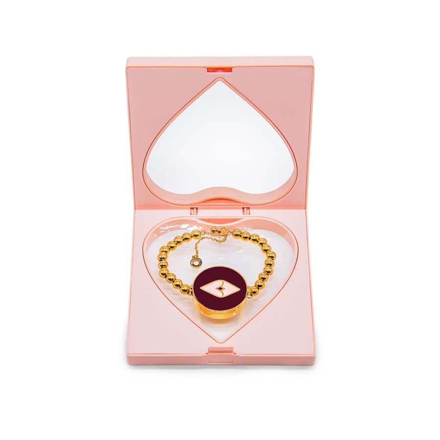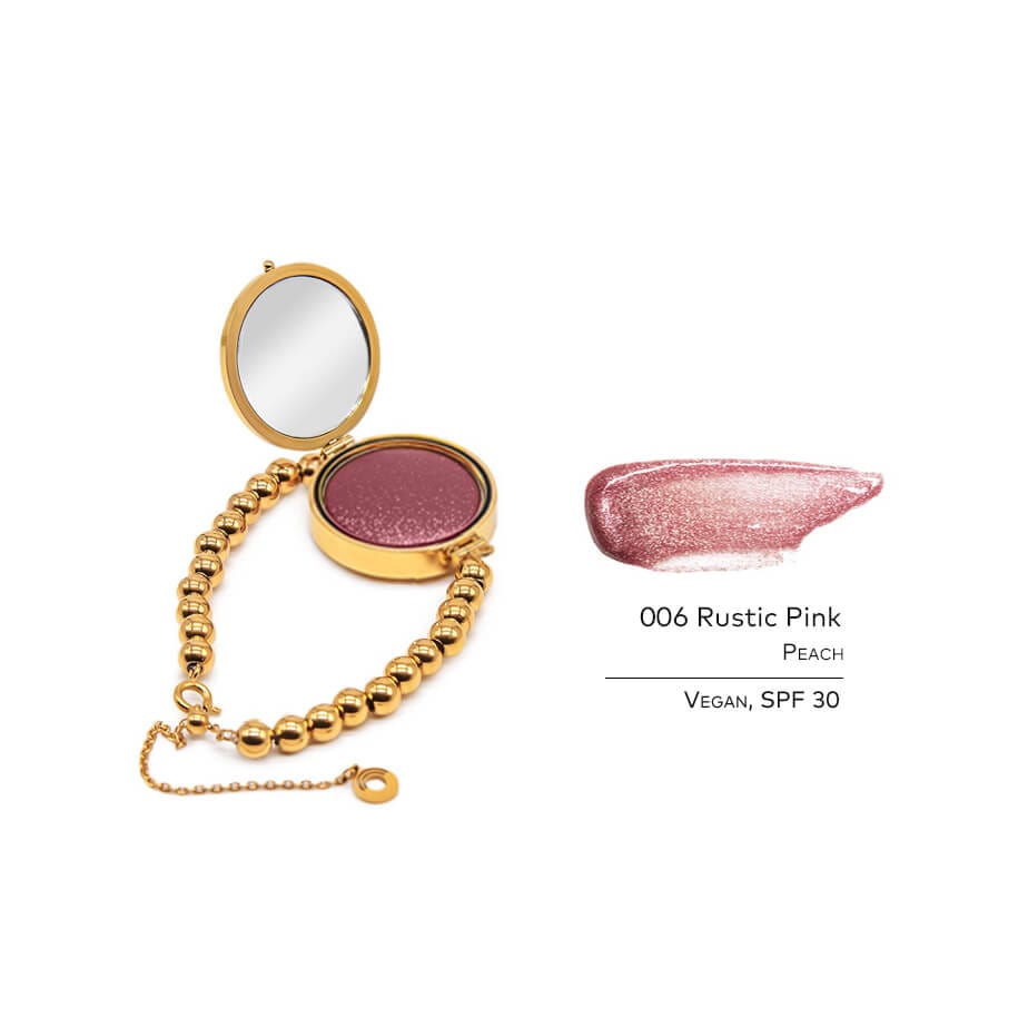 სამაჯური დამზადებულია უჟანგავი ფოლადისგან - 18კ მოოქროვებით, რომელიც გამორიცხავს ფერის ცვლილებას, არის წყალგამძლე და ჰიპოალერგიული, ტუჩის ბალმი შეიცავს SPF 30 - იცავს და ატენიანებს ტუჩებს