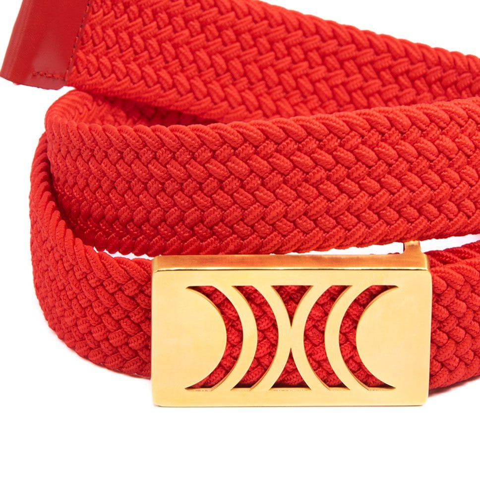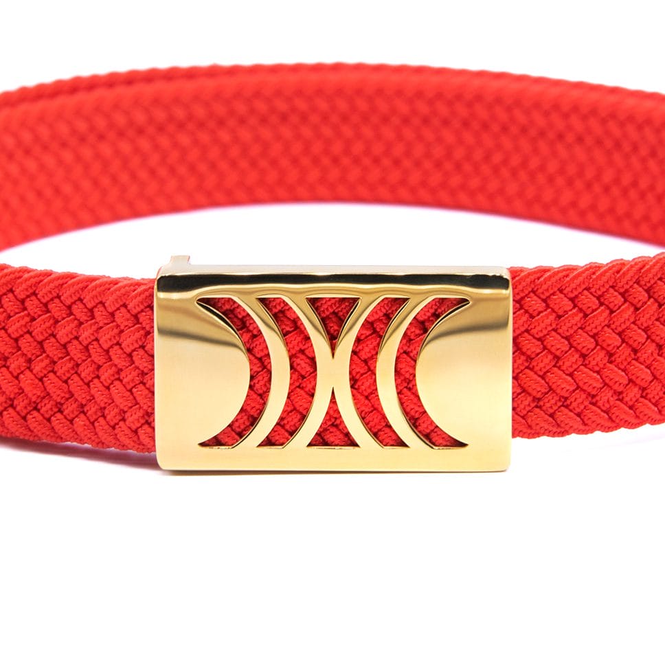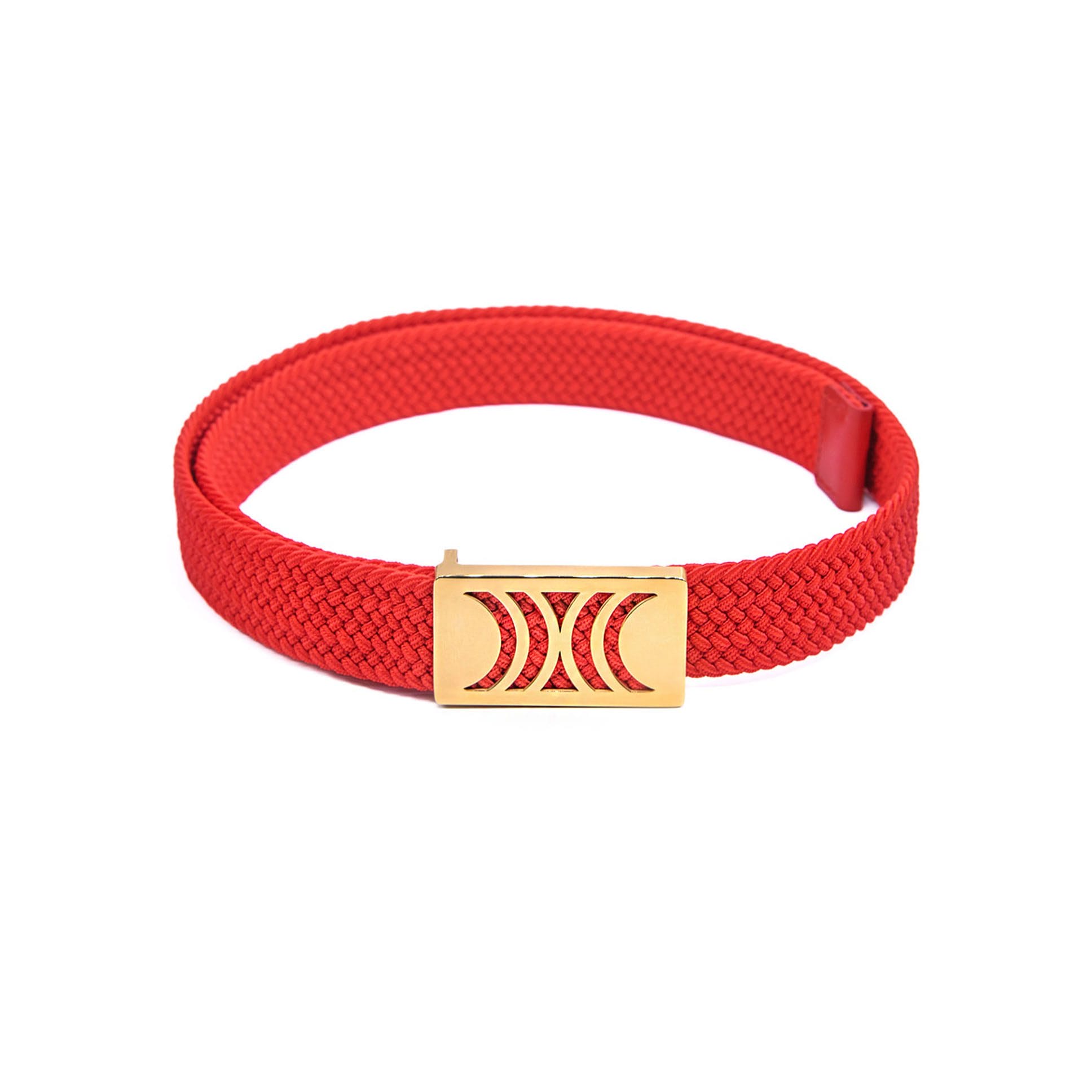 წითელი წელვადი RB ქამარი ოქროსფერი ბალთით