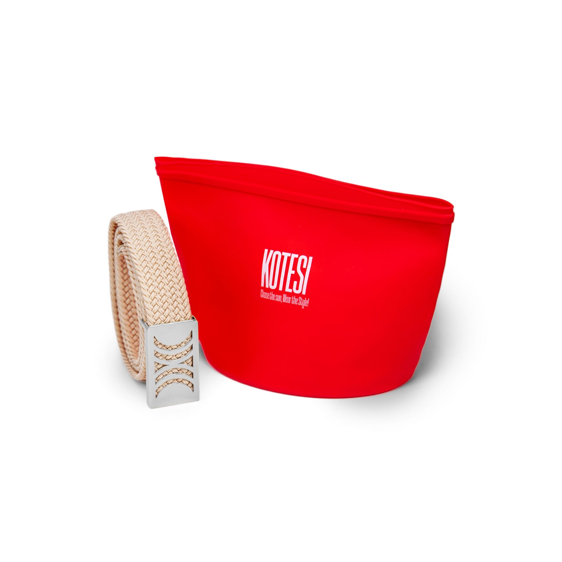 კრემისფერი წელვადი RB ქამარი ვერცხლისფერი ბალთით