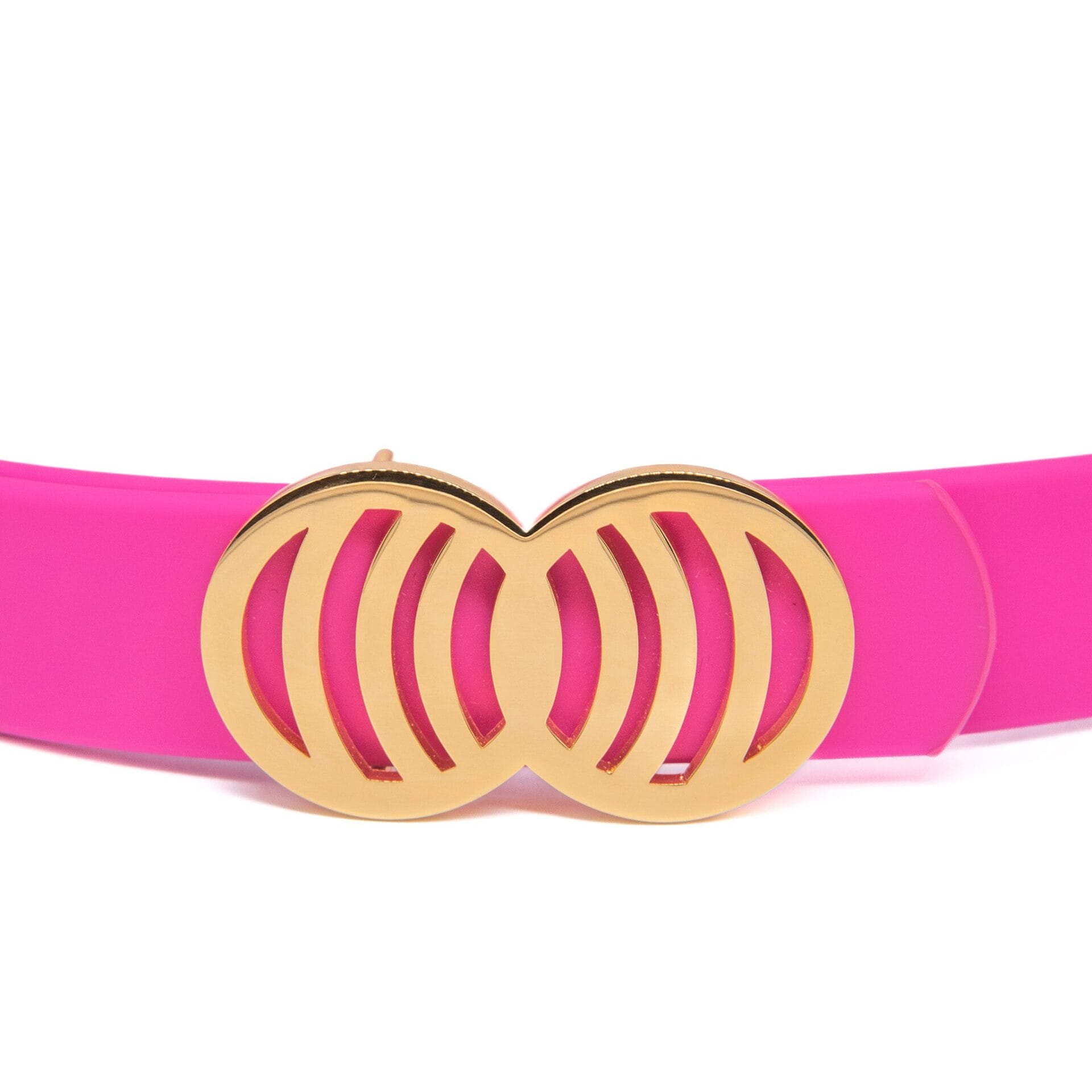 ვარდისფერი სილიკონის ქამარი ოქროსფერი ბალთით