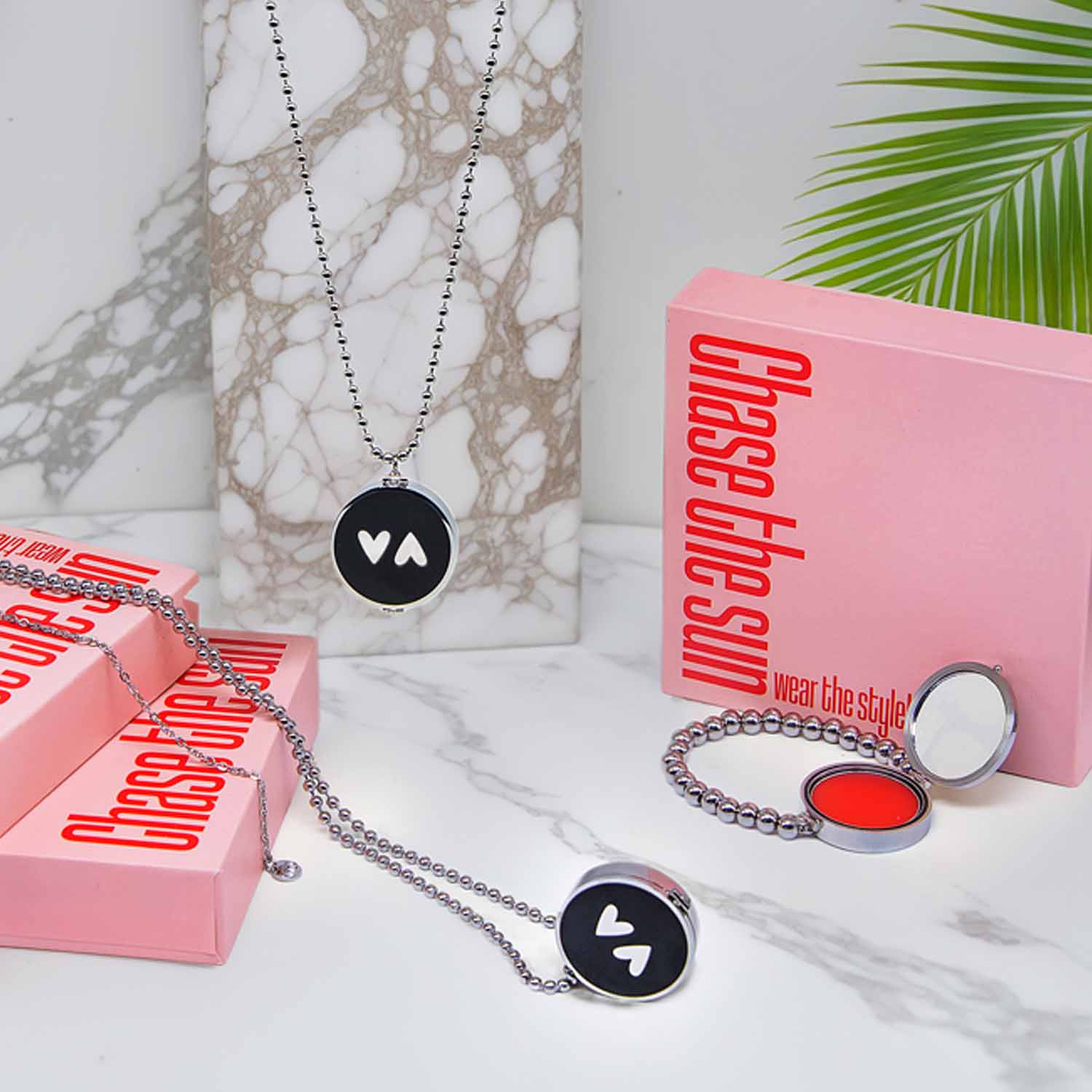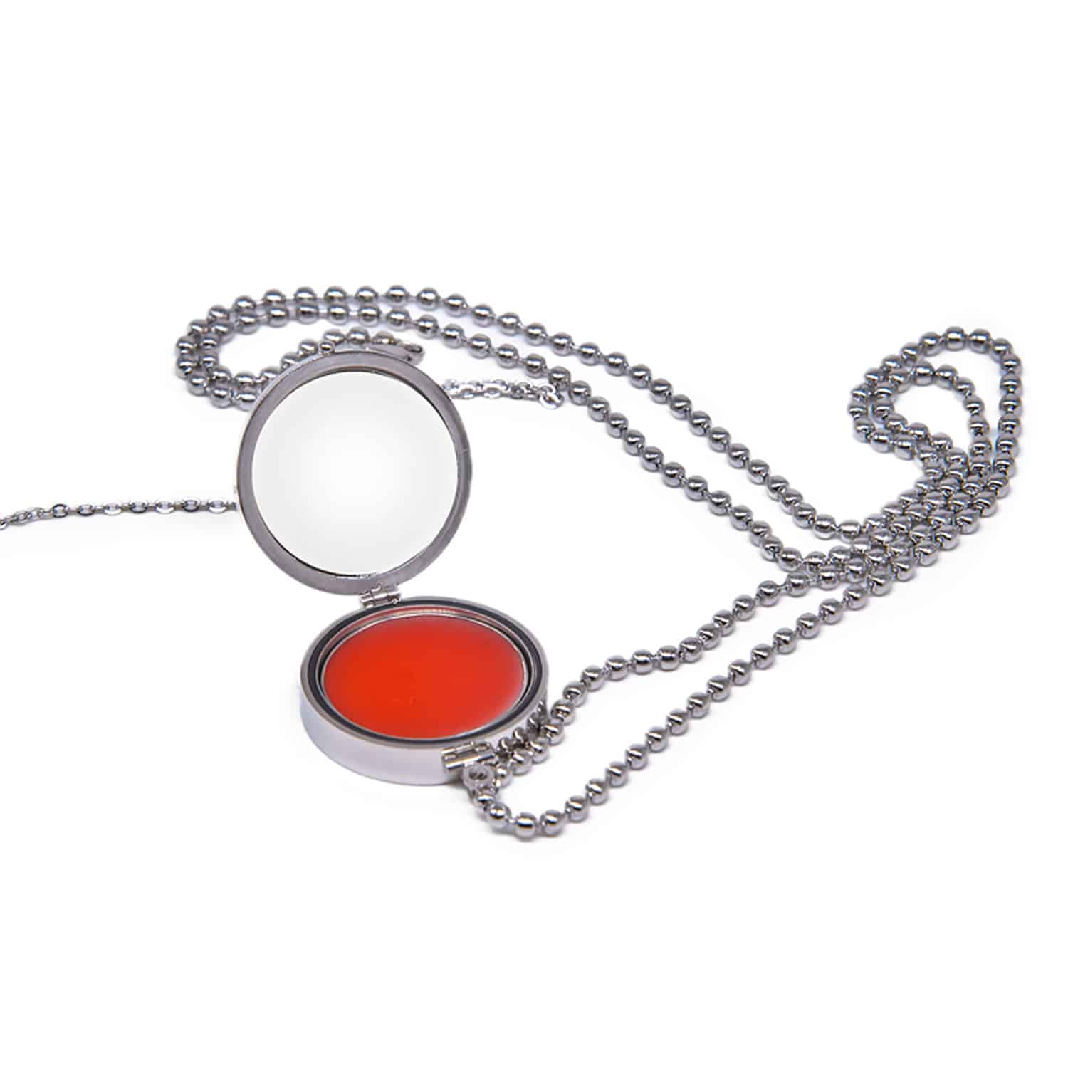 ამ ინოვაციურ ყელსაბამში თქვენ აღმოაჩენთ ტუჩის ბალმსა და სარკეს. ყელსაბამი დამზადებულია უჟანგავი ფოლადისგან, რომელიც გამორიცხავს ფერის ცვლილებას, არის წყალგამძლე და ჰიპოალერგიული, ტუჩის ბალმი ვეგანურია, შეიცავს SPF 30 - იცავს და ატენიანებს ტუჩებს.